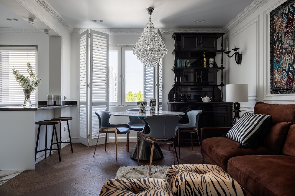• интерьеры с молдингами, высокими плинтусами, декоративными элементами.