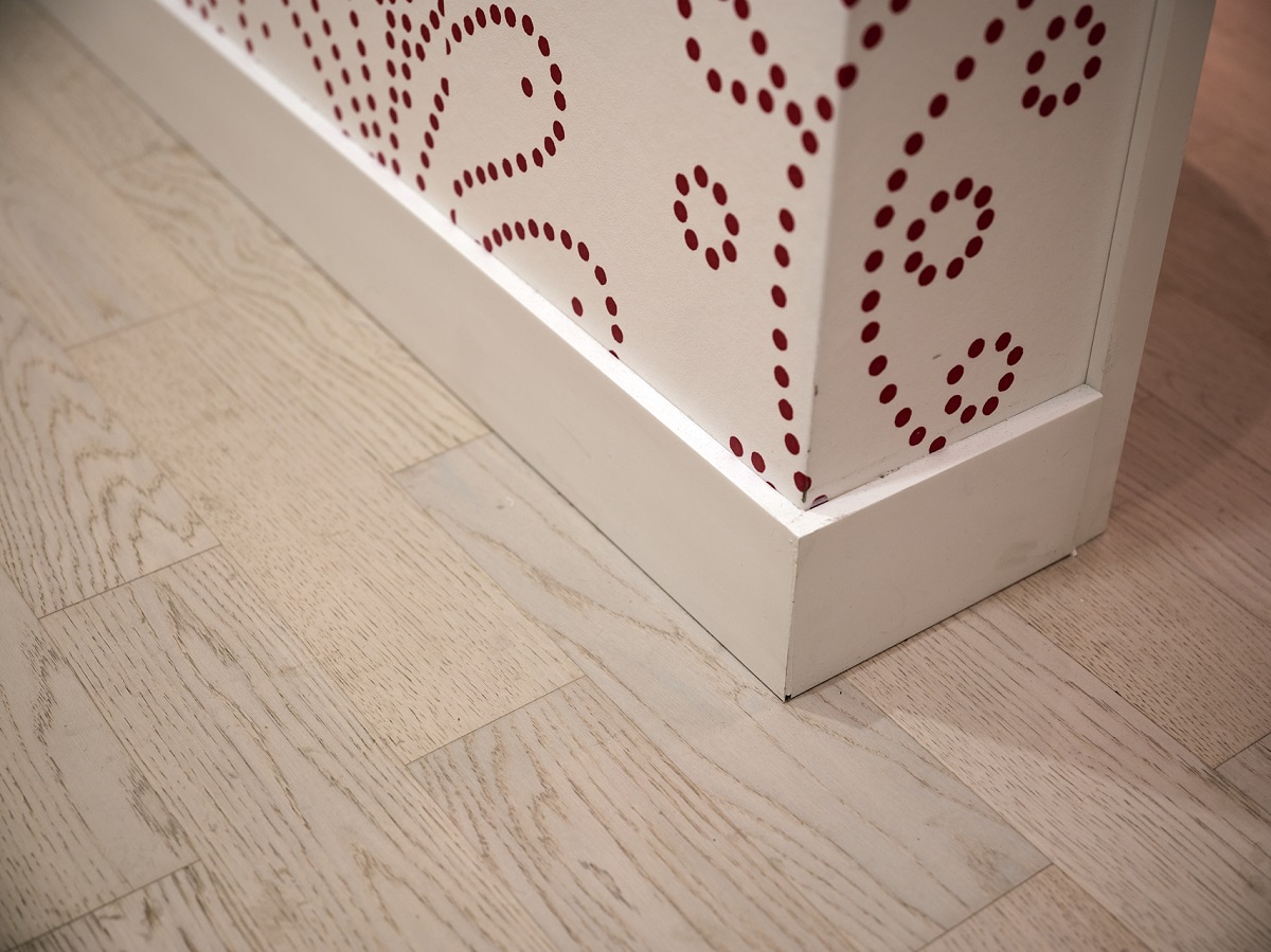 Команда «Квартирного вопроса» оформила интерьер в современном русском стиле, со смелыми акцентами и уютными деталями. Для пола выбрали кварцевый паркет «Дуб Песочный» из коллекции «Штучный паркет» — он идеально подчёркивает тепло и атмосферу пространства.
