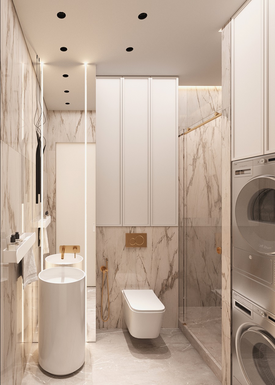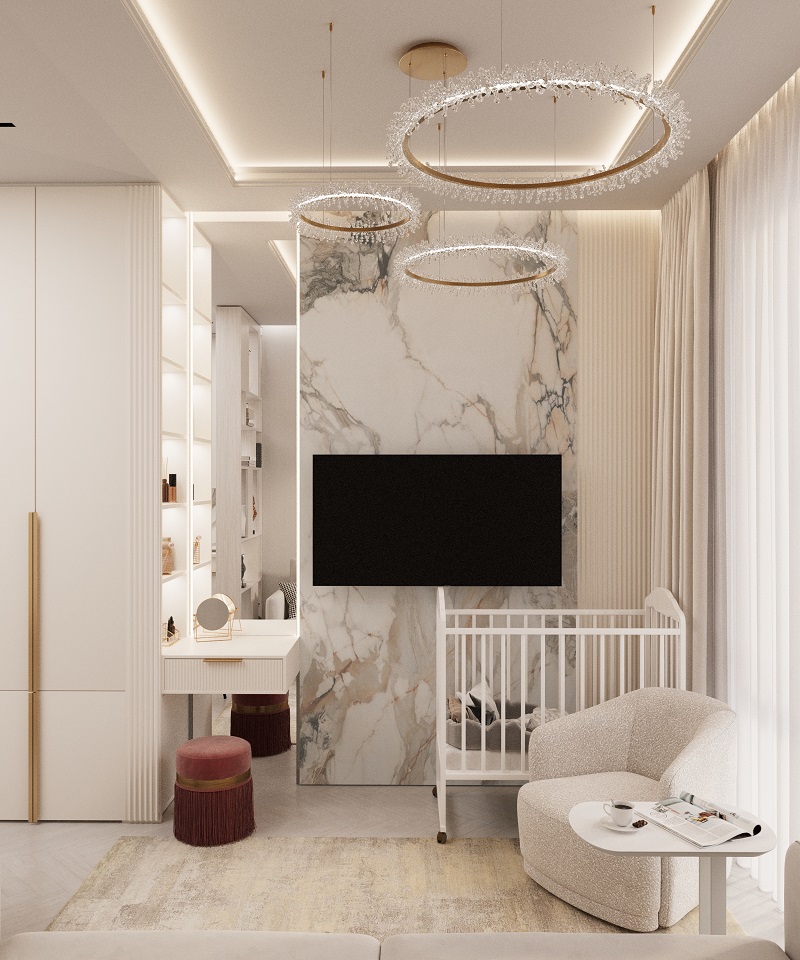 Интерьер в ЖК Will Tower — воплощение легкости и современной элегантности. Обилие белого цвета делает пространство светлым и воздушным, а панорамные окна в пол наполняют его естественным светом в течение всего дня. Натуральные фактуры дополняют атмосферу уюта: на полу — кварцевый паркет в оттенке "Дуб Песочный", который идеально сочетается с благородным мрамором, украшающим отдельные элементы интерьера.