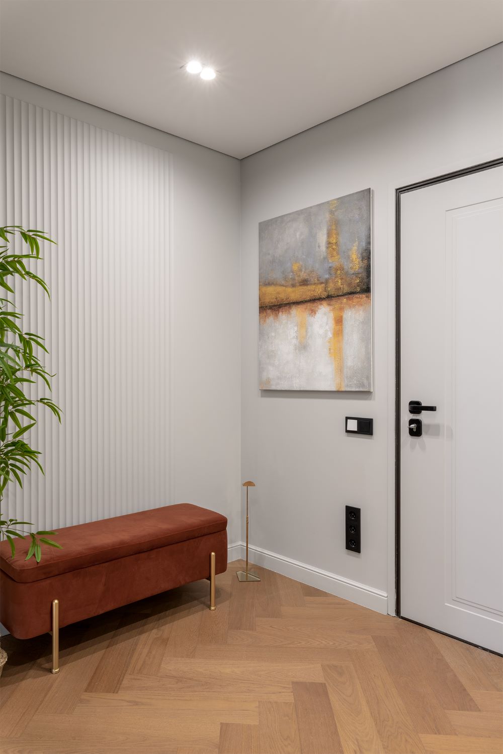 Акценты на дерево, горный камень и зелень стали основой этого интерьера с кварцпаркетом на полу.
